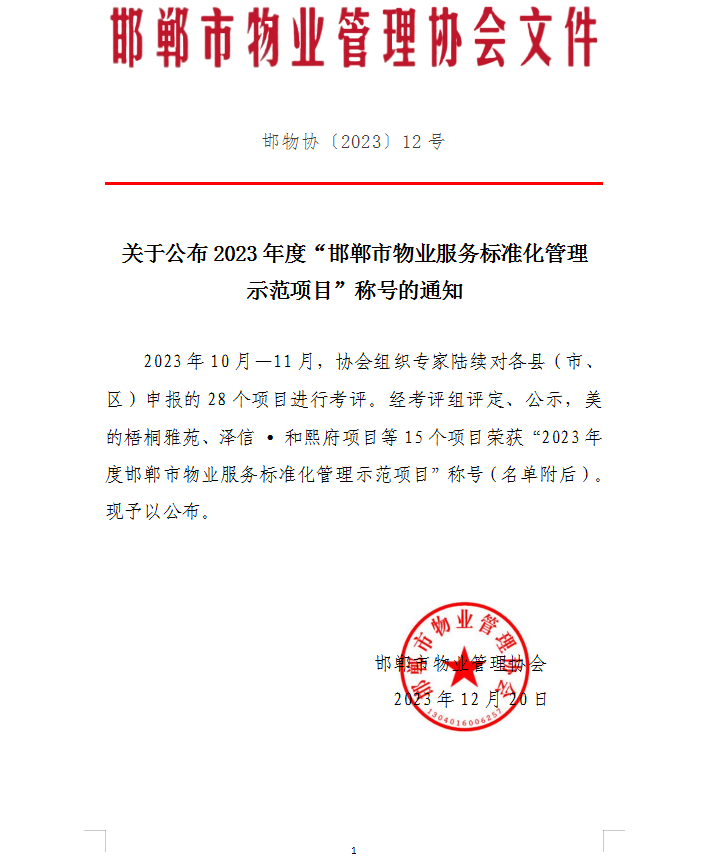 ·邯鄲市住房保障和房產(chǎn)管理局辦公室關(guān)于2022年度物業(yè)服務(wù)企業(yè)信用等級(jí)公示